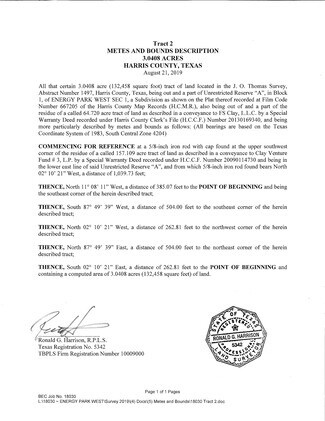 Energy Park West Phase 1, Tract #2. Build-To-Suit for Lease. Industrial distribution, light manufacturing, assembling, R&D. Brokers protected. Bring us your client's needs! This tract is ready for construction and detention is already provided. We will work with tenant to develop design and scope, price the construction and develop a Lease Agreement. We use a Design-Build construction process. Preliminary studies show this tract it is capable of a +/- 40,000 SF building with truck access and parking. 10 year lease preferred. Estimated $1.05 per SF monthly rent rate.