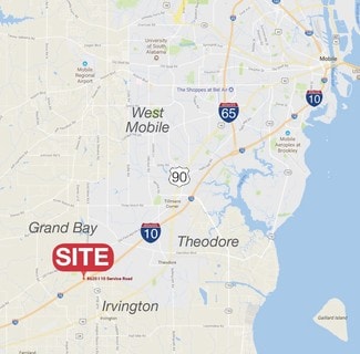 Approximately 16 acres with 687 feet of frontage on I-10 in the Grand Bay area of west Mobile. Easy access and visibility from I-10. Just west of Exit 4 on I-10 (Grand Bay Wilmer Road). Excellent industrial development site. Less than eight miles to new 2.9 million square foot WalMart Distribution Center; less than ten miles to Amazon Sortation Center (363,000 SF). Level topography.