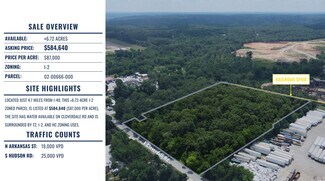 Located just 4.7 miles from I-49, this ±6.72-acre I-2 zoned parcel is listed at $584,640 ($87,000 per acre). The site has water available on Cloverdale Rd and is surrounded by T2, I-2, and HC zoning uses.