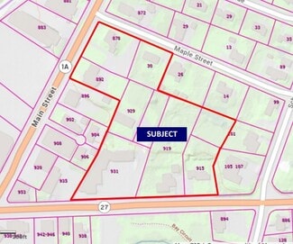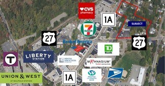 Prime Assemblage In the Heart of Walpole Center. Next to hundreds of new luxury apartment units, retailers, restaurants, bars, offices and the commuter rail station. At the intersection of Rtes. 1A & 27 with 219’ frontage on Route 1A Main Street and 460’ frontage on Route 27 East Street with Quick Access to Rtes. 128, 495, 95, Boston and Providence. Average HHI within 3 Mile Radius: $147,755/yr. Many possible uses with existing Central Business District and General Residence Zoning. New MBTA Communities Multifamily Overlay District is proposed to encompass the site.