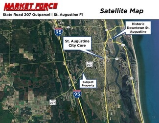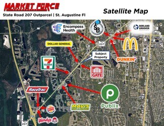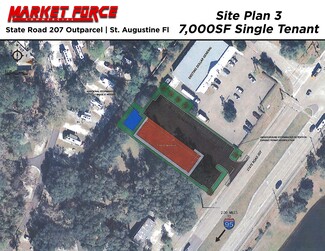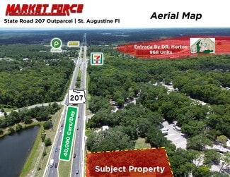 Market Force CRE, as advisor to the seller, is pleased to present an exceptional development opportunity on rapidly expanding State Road 207 in St. Augustine, Fl. The subject site, a +-.77 Acre parcel, has already been engineered and approved for multiple uses- including drive thru, Quick Lube/Automotive, and general retail. With access from a signalized intersection, multiple national tenants in close proximity, 1500+ Single Family Homes under development, and 33%+ population growth in a 5 mile radius expected in the next 5 years, this site is perfectly suited for your brand to expand into the highly coveted St. Augustine market.