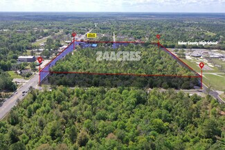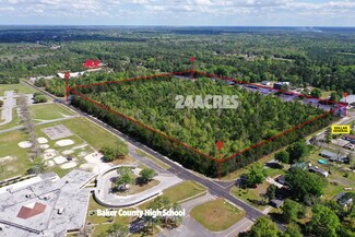 Vacant commercial property in the town of Glen St. Mary. Property features mature trees on 24 acres! Plenty of land to build future businesses. Unrestricted uses include: motels/hotels, restaurants, gift shops, regional shopping centers, retail sales and service establishments, general office, and much more! Seller makes no guarantees on water and sewer capacities. Property is within a mile of I-10. Property is part of parcel #362S21005100590010. *All parcel boundaries are estimated only*