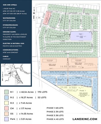 The Wescott Subdivision and the City of Colusa as a whole will be essential hubs for one of the biggest approved water resource projects in California: the Sites Reservoir Project. Sites Reservoir will create thousands of jobs while offering a beautiful recreational getaway and a clean water resource for Colusa’s current and future residents. The Wescott Subdivision is just minutes from the Sacramento River, east of I-5, off Highway 20, and only 30 minutes from the future Sites project. The property consists of ± 90 acres ready for the development of low, medium, and high-density residential housing with dedicated acreage for a park and open space area.