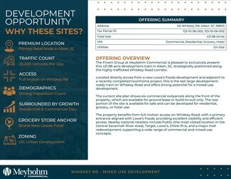 Located directly across from a new Lowe’s Foods development and adjacent to a recently completed townhome project, this is the last large development-ready tract on Whiskey Road and offers strong potential for a mixed-use development.