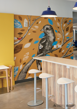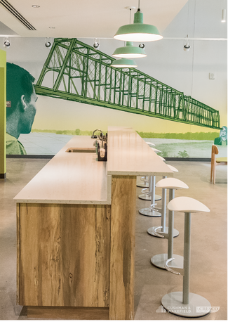 1 American Blvd is full of urban green space, not only on the exterior of the building, but also in its open courtyard that begins on the third floor. This central gathering space was created as a spot to get fresh air or to sit and enjoy Starbucks which is also located on the third floor. The courtyard is able to accommodate formal events such as dinners or meetings as well in the warmer months. Another unique feature of this creative office space is the glass walkway that connects the building to the 1,250 space parking garage. This prevents employees from having to go outside to get to their cars, which they will greatly appreciate during inclement weather.