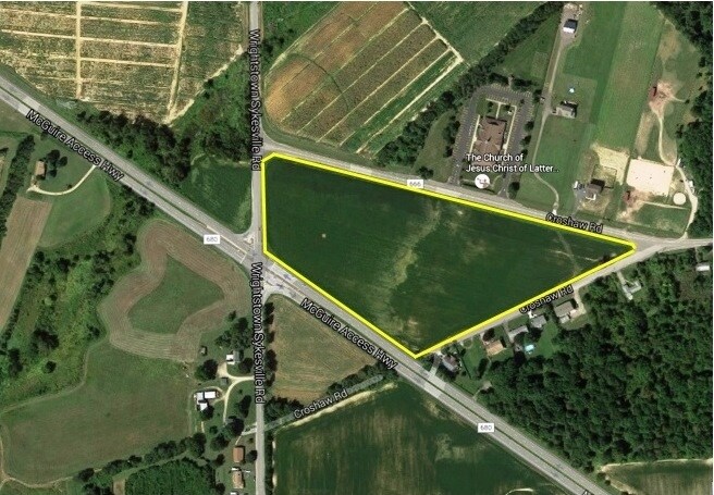 The site contains 13.05+ acres and has road frontage on all four sides of the property. There is 1,460+ feet fronting on the North side of Croshaw Road and 876+ feet fronting on the south side of Croshaw road, 275+ feet front on Wrightstown Sykesville Road and 639+ feet fronting on Maguire AFB defense access road. The site is level and is currently being farmed.