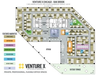 Benefit from numerous desirable amenities such as ultra-fast internet, complimentary refreshments and fresh brewed local coffee, high-end furniture, copy/printing services, a wellness room, member lounges, mail service, and reliable on-site staff. There's also an on-site 4,000-square-foot terrace that can be utilized as event space as well as scheduled business and networking events at least twice per month. Additionally, 1 Mid America Plaza is situated just off Highway 83 and I-88 and directly across from the well-known Oakbrook Center, an upscale complex that’s home to brands like Gucci, H&M, Lululemon, and Warby Parker. Enjoy a convenient, turnkey work experience at Venture X Chicago – Oak Brook Terrace.