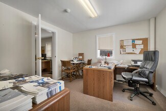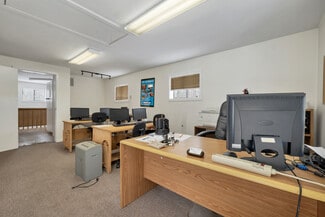 Inside, the building is thoughtfully laid out across two floors, with office space located on the second level—ideal for separating administrative functions from shop or storage areas below. The configuration supports both operational efficiency and professional presentation for clients or staff.