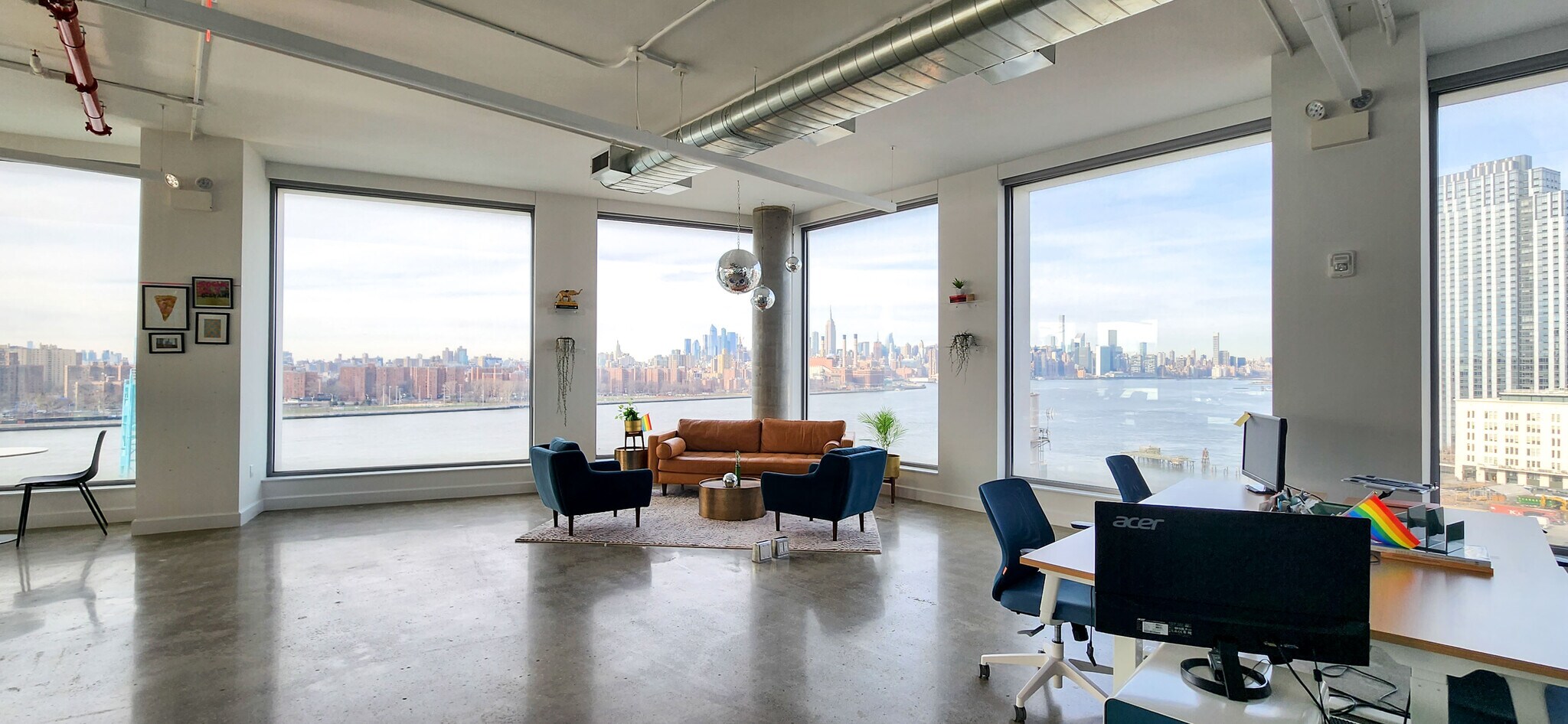 One-of-a kind open-plan office space on the 11th floor of 10 Grand Street, Williamsburg, Brooklyn.