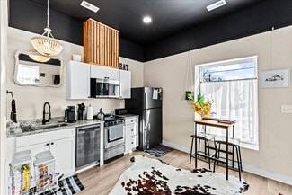 The main level features two fully furnished 1-bedroom, 1-bath units, each with its own full kitchen and washer/dryer. These units can be rented individually or opened to function as one larger living space, offering exceptional flexibility for short-term, mid-term, or long-term rental strategies.