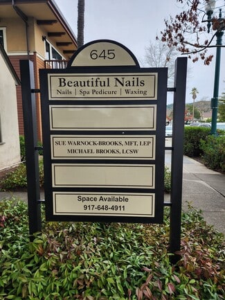 The perfect complement to 10 Maple Street is its sister property on this parcel, 641-651 Broadway Street. This historically significant property was constructed in 1928 and has the charm and aesthetic of a vintage Wine Country cottage. The property enjoys a high-impact, high-visibility location on the hard corner of Broadway and Maple Streets. The improvements are predominantly single-story with a small partial second level. Estimated gross leasable area of the building is 4,734 sq. ft., with additional common areas of approximately 156 sq. ft. on the upper level, and 645 sq. ft. on the ground level for a total approximate gross building area of 5,535 sq. ft. The Broadway Street façade and yard area of the property are dominated by a massive tree whose large trunk is encircled by bench seating. The parklike setting is a valuable amenity for employees and visitors alike.