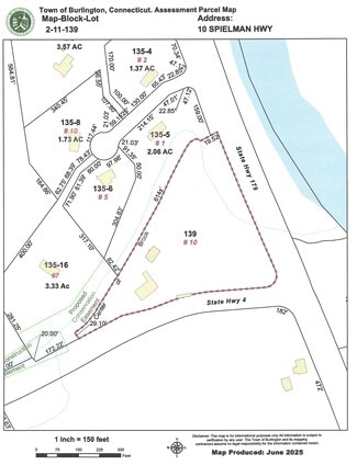 EXTREMELY RARE COMMERCIAL OPPORTUNITY for this amazing 4.5 acre corner lot on Rt. 4 and Rt. 179 in Burlington near the Farmington River. There is approximately 1300 feet of road frontage in an exceedingly high traffic area with an average daily traffic count of approximately 11,000. The lot secures public attention because of a traffic light at the intersection. It is difficult to pass by and not notice this location! This is a generational one family ownership property. There is an original brick building with a metal roof previously used as a woodworking shop. The bones of the building are solid but needs renovation and updating. The old wood shop has a charming rustic feel with a large front window looking onto the roadways. There are 2 garage bays with interior access and a 3rd garage bay with basement access. There is also a storage building at the rear. If renovation is not in your plans, the acreage will support new business opportunities. This is an exceptional development location in Farmington Valley.