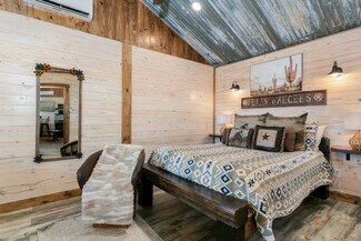 FIVE cabins, PLUS a main home AND separate office building! GROSSING OVER $208,000.00 in 2024! Located just outside of town on right over 10 acres (6 wildlife exempt keeping taxes low). The two story luxury barndominium allows you to live on property and also produce income with the custom cabins that blend rustic charm with modern comfort. Five cabins on the property include, The Mason Jar (2/2) The Shining Star (1/1), The Rustic (1/1), The Shooting Star(1/1) and the Morning Star(1/1)! Inside each custom built cabin you will find full kitchens, king beds, sitting area and fine linens. Outside each cabin there are private hot tubs, covered porches, fire pits and grills to embrace the outdoors, perfect for unwinding after a day of wine tasting, hiking, or shopping on Main Street. There is also a separate flex building that can be used for an office, gym, game room or anything you can imagine! Whether you’re looking for an investment property, multifamily living, or a place to call home, this property is sure to check all of the boxes, Schedule a tour today!