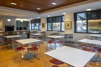 • Features include an upgraded fitness center with changing rooms, multiple video conferencing rooms, and a café.