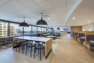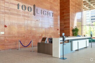 100 Light's best-in-class amenities make your nine-to-five come alive with two full floors of sky-high, panoramic amenity space perched on the building's 18th & 17th floors, including a made-to-order cafe, grab & go market, lounge and game areas, and a spa-quality fitness center with saunas and locker rooms. With even more in store, enjoy access to a 100+ seat conference center with lounge, kitchen, and dry cleaning services. An expansive outdoor area, Lumen Plaza, offers green space for group classes and events.