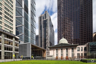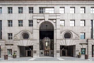 Towering 34 stories above the traffic, Two Logan Square is a provocative beauty in step with its environment in an entirely original way. Polished and flamed panels of granite punctuated by intervals of glass distinguish the exterior, which was designed to complement its neighbor, One Logan Square. Arches, keystones and cornices are reminiscent of the classical details important to every structure encircling Logan Square, but are rendered modern by the architects of Kohn Pedersen Fox.As noteworthy as the facade, the lobby of Two Logan Square is a study in grandeur. Entering through the center arch on 18th Street reveals a three-story loggia awash with light. Revolving doors lead to a vaulted lobby that is lit by a procession of chandeliers. The interplay of mirrored glass and Italian marble, of pilasters on the walls and coffers on the ceiling, is enriching. It is an environment that impresses upon all who visit the importance of the retail establishments in the lobby and the companies that fill the floors above.The ambiance established in the loggia extends to every floor. There is a generous ratio of windows to floor space made possible by the building's central core a