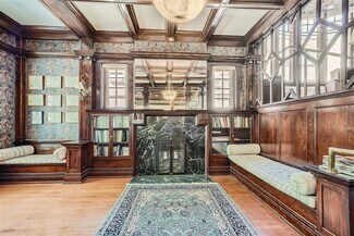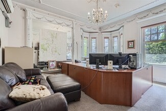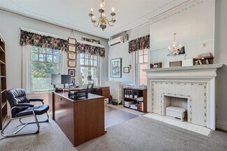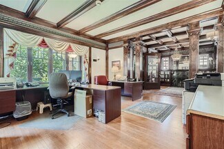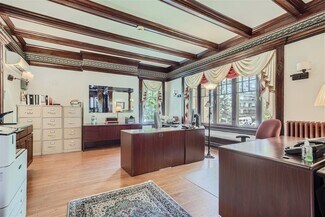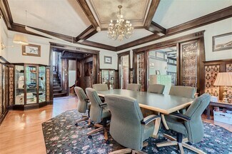 Built in the early 20th century for a silver industry magnate, the Brind Mansion is a historic residence smartly converted to an elegant office and conveniently located on the northeast corner of Logan Street and East 10th Avenue. The building spans four stories, and includes eleven offices, five bathrooms, eight surface parking spaces, and one garage space. An impressive marble porch leads to an elegant interior with ornate woodwork and built-ins, coffered ceilings, leaded glass windows, engraved wall coverings, and a grand staircase. Heating and cooling are provided by an efficient heat pump system that can be individually controlled in each office and