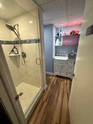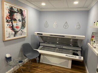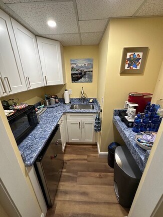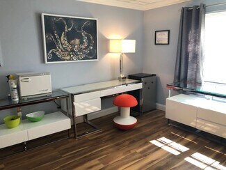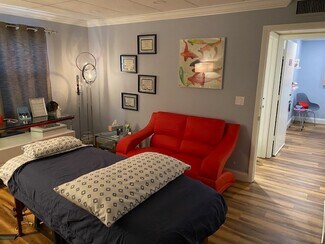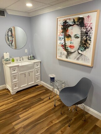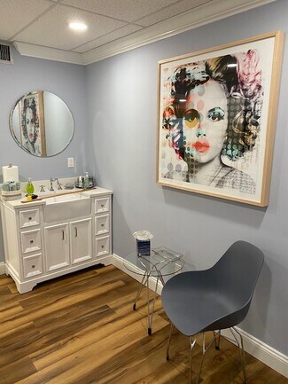 The 1200 sq foot Med-Spa space is fully built-out with four treatment rooms and two private bathrooms, one with a shower. Three of the four treatment rooms are equipped with white quartz spa vanity cabinets with stylish, oversized 14 inch wide farmhouse style sinks, and the fourth treatment room has an existing water hook-up. Each treatment room has updated locks with individual keys. Additional unit amenities include a reception area, a waiting room, a kitchenette, and a storage room with additional storage closets. (All area dimensions are available on the unit floor plan in the photo album below.) Both the reception and kitchen areas are equipped with top-quality quartz countertops and storage cabinets. The unit has high impact windows and doors (2 outdoor access doors: main entry and service pick up), crown molding, and luxurious Core-Tech flooring. Electrical upgrades include LED lighting throughout, additional, upgraded outlets, separate dimmer controls in all rooms and all areas, and whole unit surge protection. WiFi, ADT cameras and security are included with rent with transferable camera app. Water (Hot/Cold) and AC are included with self-contained temperature controls. AC maintenance and unit insurance covered by property owner. The Fairway Building also has an elevator and reserved, covered parking for each unit owner or tenant. Hours of operation are choice, no building requirements or restrictions on hours of operation.