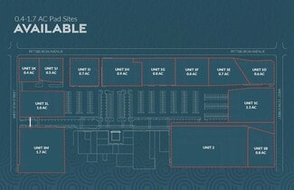 Pad Parcels available: Unit 1M - 1.7 AC Unit 1L - 1.0 AC Unit 1K - 0.4 AC Unit 1J - 0.4 AC Unit 1I - 0.7 AC Unit 1H - 0.9 AC Unit 1G - 0.8AC Unit 1F - 0.8 AC Unit 1E - 0.7 AC Unit 1D - 0.6 AC Unit 1C - 1.30 AC Unit 1B - 0.8 AC Unit 2 - TBD