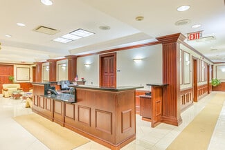 Adorned in granite exterior, with a choice lobby, and functional layout, 1000 woodbridge center drive enjoys a 90% renewal rate from its tenants. The interiors are outfitted with mahogany millwork. The security makes it easy to screen patrons, and welcome guests. Tenants enjoy the dual parking lots, common area kitchenette, and clean understated entrance.