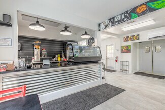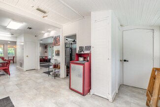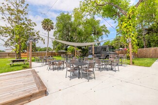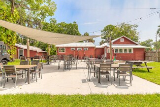 Rare opportunity to acquire a unique, restaurant on highly sought-after Canal Street in New Smyrna Beach, Florida. This charming establishment seamlessly combines modern amenities with timeless appeal, featuring cozy indoor dining and a spacious outdoor patio equipped with abundant seating, shade sails, and ceiling fans to ensure a comfortable atmosphere for guests. Patrons will appreciate two generously sized restrooms designed for convenience. The fully equipped kitchen boasts new, high-quality equipment, including a large hood, ovens, cooktops, prep stations, and all essential components to create exceptional meals efficiently. A detached building provides extra storage space, ideal for additional supplies or equipment. Situated on a large corner lot, the property offers excellent visibility, easy customer access, ample parking, and a fenced yard that enhances privacy and guest experience.