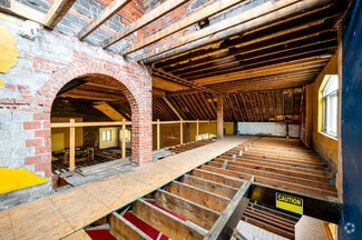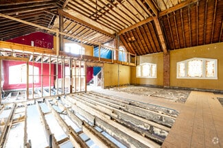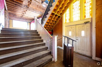 Situated adjacent to Fountain Square, this one-of-a-kind property spans a total of 6,765 square feet across three floors and a mezzanine. The exteriors provide excellent curb appeal, with a well-maintained brick façade, beautiful stained-glass windows, and an eye-catching bell tower. The interiors have been emptied, and the building is ready for remodeling, with all systems removed.