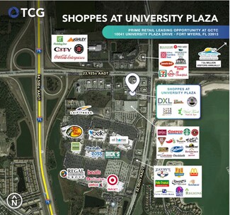 This prime leasing opportunity is strategically located at the main entrance of the Gulf Coast Town Center in Fort Myers, FL.