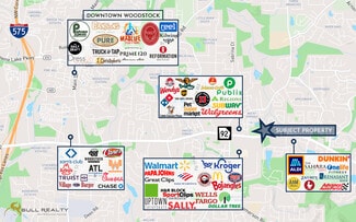 Situated less than one mile from Downtown Woodstock, the property is surrounded by dense residential development and is in close proximity to major retail and dining destinations, including Woodstock Village, Woodstock Commons, Woodstock Square, Towne Lake Center, and Old Town Village Center—all within a two-mile radius.