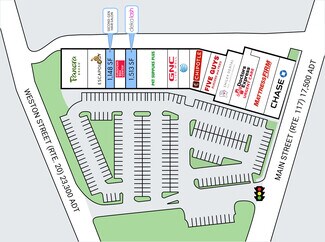 • 44,639 SF shopping center with frontage on both Main Street (Rte. 117) and Weston Street (Rte. 20)