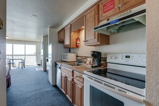Surfside Resort comprises six buildings — five dedicated guest buildings and one housing the administrative functions, including the front desk, laundry facilities, on-site manager and staff accommodations, and an indoor heated pool for guests. The resort offers a diverse range of room types, from standard sleeping rooms to spacious family and king suites — many featuring private balconies, gas fireplaces, fully-equipped kitchens, and breathtaking ocean views.