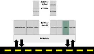 First floor +/- 1,424 SF retail unit available at Starlite Plaza. A former insurance and phone retail store, the unit is in excellent condition with 2 entrances (front and back), room with one-way mirror, private restroom, and large back area for storage, break room, and/or office space.