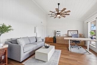 Located in an exclusive private airpark, this stunning 2,028-square-foot home offers three bedrooms and two baths, including dual primary suites with ensuite bathrooms. The open-concept floor plan flows effortlessly into a private backyard sanctuary—ideal for relaxing after a day in the skies or entertaining fellow aviators. Just steps away, the impressive 2,600-square-foot detached hangar is built for both function and flexibility. In addition to generous aircraft space—accommodating up to four planes with a Hangar door that is 12' Tall x 43' wide—it features a newly constructed, thoughtfully designed two-bedroom, one-bath accessory dwelling unit (ADU). Perfect for family, guests, a private office, or potential income-producing opportunities.