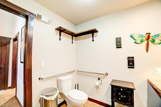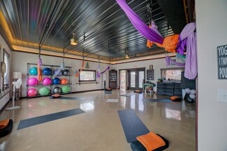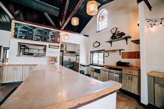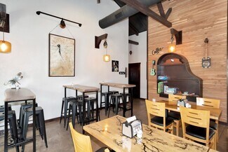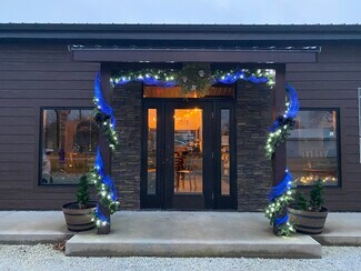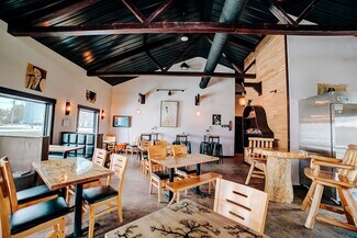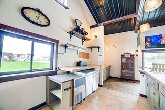 Inside, you’ll find soaring ceilings with custom lighting, shiplap walls, heated stamped concrete floors, and premium Pella windows and doors. Handcrafted shelving adds character throughout. The café area seats 40 guests and features a full kitchen, drive-up window, and direct access to an enclosed patio with seating for 20+. Multiple entry points, a shared foyer, massage/office room, and additional storage provide flexibility for a variety of business concepts. This thoughtfully curated space is ideal for entrepreneurs or investors seeking charm, high traffic exposure, and endless possibilities.
