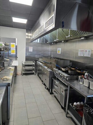 Turnkey, fully equipped restaurant opportunity with real estate included. This well-maintained, freestanding commercial property is ideally suited for an owner-operator or investor looking to step into a ready-to-operate food service business with minimal startup time. The property features a modern dining area with ample seating, updated finishes, and large windows providing excellent natural light. The front-of-house includes a spacious service counter, digital menu display setup, and efficient customer flow layout. The commercial kitchen is fully built out with a professional-grade ventilation hood system, multiple fryers, cooking stations, prep areas, and stainless steel equipment throughout. Additional highlights include a walk-in refrigerator, dedicated storage areas, and organized back-of-house workflow designed for high-volume operations. All furniture, fixtures, and equipment (FF&E) are included in the sale, offering a true plug-and-play opportunity for a variety of restaurant concepts. The property also features on-site parking and strong street visibility, making it ideal for dine-in, takeout, or delivery-focused operations. Perfect for restaurateurs seeking a turnkey setup or investors looking for a fully built-out commercial asset.