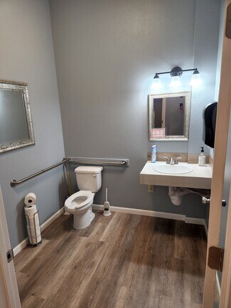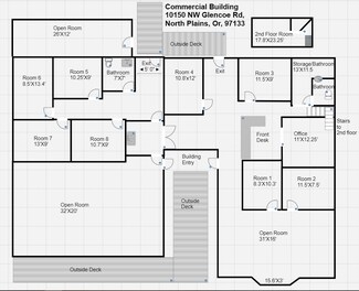 Our building is located just a few blocks north of Exit 57, off of highway 26 on NW l Glencoe Road.  This is the main arterial into the commercial area of North Plains. Our building has 88 feet of frontage on to NW Glencoe Road. It is a standalone building with its own parking.  The newly resurfaced parking lot is well lit 24/7 and has 31 private parking spaces.