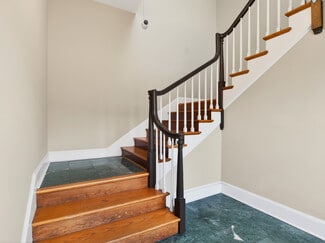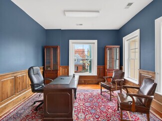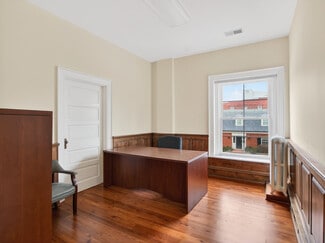 Previous bank lobby, side rooms, and finished basement avaiable on first story. Multiple offices of varying sizes available on second floor.