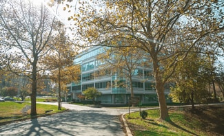 Exton Corporate Center is a premier Class A office building located at 102 Pickering Way, Exton, PA. Featuring a striking glass exterior, the property offers panoramic views of a serene, forested landscape, creating a professional yet tranquil work environment.