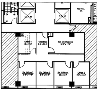 • Direct elevator exposure, office intensive, kitchen and print room, 2 conference rooms, reception, building security, 2 front corners of building,