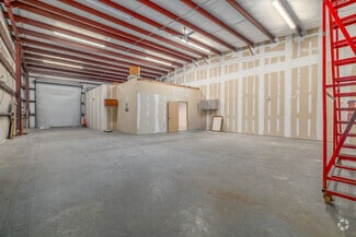 Five additional mixed-use industrial buildings sit behind the retail frontage, offering a flexible combination of warehouse and office space. Spaces include covered entrances, front-loading with oversized overhead doors, and potential over-unit signage. Layouts are well-suited for electricians, HVAC companies, construction trades, repair services, light manufacturing, assembly, and many other industries.