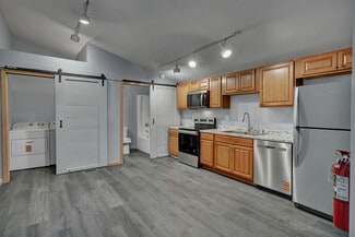 Formerly a law office, this 2,320 SF versatile building features main-level office space with tall ceilings and a private bathroom, as well as an attached heated/cooled garage/shop area with 14-foot ceiling, and brand new, insulated 9x10 Garage door with wifi-enabled opener. Upstairs, you’ll find a fully renovated one-bedroom loft-style apartment, with a brand new set of Whirlpool appliances, ideal for live/work or additional rental income.
