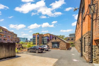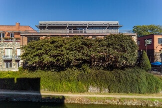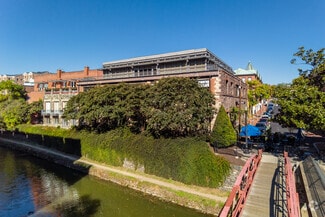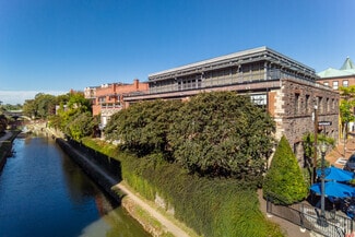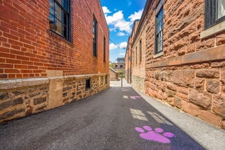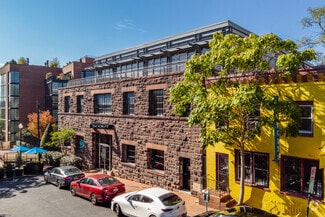 Reception area, large open area private offices with glass sidelights, glass conference room, work room, storage closet and kitchenette. 1st floor space in a renovated warehouse with large industrial-style windows, high exposed ceilings and exposed stone. Additional space entrance on Cady's Alley.