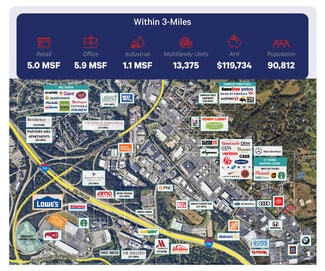 • The MSA holds 5.0 MSF of retail space, 5.9 MSF of office space, 1.1 MSF industrial space, and 13,375 multifamily units within 3-miles.
