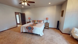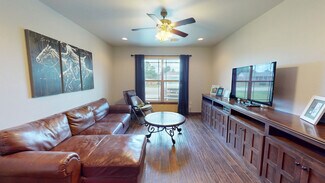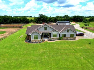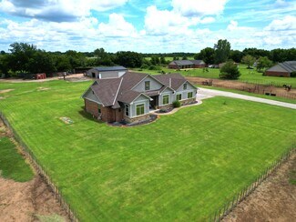 DID YOU NOTICE THE IMPROVED PRICE!!! This is the nicest small ranch I have ever seen, with everything a person could ask for. With 3 - 1/4 acre holding pens 1-3/4 acre holding pen, 1- 1/3 acre pen and 1- 2.75-acre pen. A 100' X 100' lighted arena and a 44' round pen to work your horses. 9 very nice wood and metal stalls with automatic fly suppressant system for those hot summer days. 10+/- pecan trees and a 35' X 50' shop/barn for storing your tack, hay, and maintaining your equipment. Did I mention the house, you are going to want to invite your friends and family over to the large 4-bedroom 3.5-bathroom home with an open floor plan. When entering the double door entry you are greeted by a rock, gas fireplace with 10' ceilings, just to the right is an office or could be a fifth bedroom if needed. A cook's kitchen with a large island/bar, with sink, work area and stove top right across from each other, stainless appliances. granite counter surfaces and ceramic tile floors, set off the plentiful dark stained cabinets with a walk-in pantry. The primary suite has a large bath with separate shower, jetted 2 person tub and double sinks. The large primary closet has upper and lower hanging rods for plenty of storage. The den is tucked in just behind the kitchen for a relaxing place after a long day, the half bath and mud room sit just between the kitchen and den. The 30 X 20 covered patio is a great place to enjoy the outside with connections for electric and cable for your outdoor TV. Bedrooms 2 and 3 share a Jack and Jill bathroom with separate sinks, bedroom 4 has a private bath. When those Oklahoma storms roll in you can take shelter in your own cellar located in the garage.