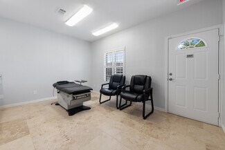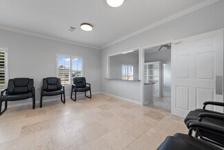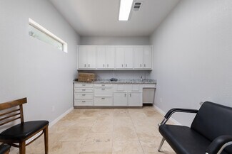 NNN Well-maintained commercial space offering a flexible layout ideal for medical, wellness, office, or professional services. The property features multiple private treatment rooms, built-in cabinetry with sinks, durable tile flooring throughout, and abundant natural light. Several rooms are equipped with plumbing and storage, making it well-suited for medical, aesthetic, therapy, or specialty practice use. The layout also includes a reception area, private restroom, and additional workspace that can be configured for offices, consultation rooms, or break areas. High ceilings and clean finishes create a bright, professional environment ready for immediate occupancy. Convenient access and excellent visibility make this a great opportunity for businesses seeking a turnkey professional space.