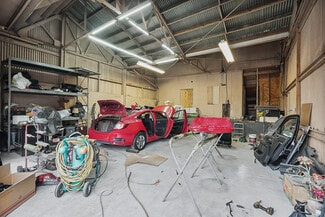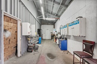 Industrial Warehouse with Fenced Yard - 4,000 SF Well-maintained 4,000 SF industrial warehouse featuring 14' clear height, two grade-level doors, and a 12' x 12' dock loading door. The property includes a 144 SF private office, fluorescent lighting, and 200-amp electrical service, making it suitable for a variety of industrial uses. The site offers a fully fenced and paved yard with 24-hour access, ideal for storage, fleet parking, or outdoor operations. The warehouse has previously accommodated a body shop and a trucking company with 53-foot dry van trailers, demonstrating excellent accessibility and functionality. Built in 1975, this property provides secure storage space, a raised floor, and a fenced lot, making it a versatile option for warehouse, distribution, or light manufacturing users.