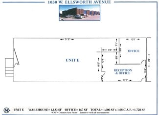Attractive well maintained all brick multi-tenant industrial building with central hallway. Unit E features reception and office area, private office and, 1,133 SF warehouse. One dock-high loading area, 200 AMP 3-Phase. Building visible from I-25. Easy access from I-25, Alameda Ave. and Kalamath St. 4 reserved parking spaces. Fenced parking available.