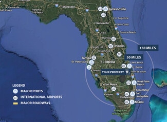 Approximately 245 high-and-dry acres of rail-accessible industrial and commercial land located in St. Lucie County, just west of Port St. Lucie. The property has MXD future land use allowing heavy industrial, light industrial, and commercial development and is well suited for logistics, manufacturing, distribution, and data center uses. The site fronts Range Line Road and is approximately 3.5 miles from I-95, with access to Becker Road, Crosstown Parkway, the Florida Turnpike, and SR-70. Rail access is available via easement to the Florida East Coast Railway, with connectivity to major Florida ports. Utilities including power, fiber, water, wastewater, and natural gas are available nearby.