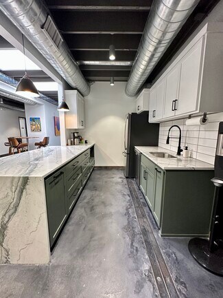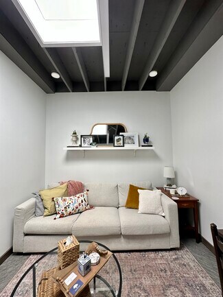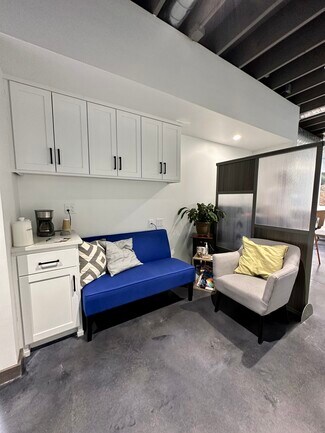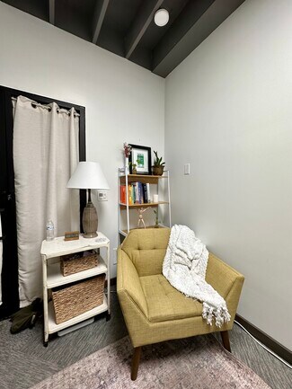 Two suites are available in this modern downtown Lawrence office building. The spaces include free Wi-Fi, access to a conference room, a commercial printer, a shared kitchen, and a break area.