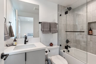 • Premium finishes, central HVAC, in-unit laundry, generous storage.