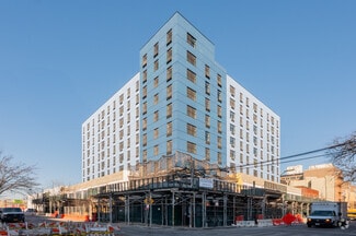 This unique opportunity offers street-level and second-floor retail or office space at 443 East 165th Street, within a newly constructed 10-story residential building in the Morrisania neighborhood of the Bronx. Slated for delivery in June 2025, this development features 18,000 square feet of flexible retail/office space on the first floor and the option to combine with an additional 24,000 square feet on the second floor via a dedicated elevator, creating a total of 38,000 square feet of contiguous space. The fully sprinklered property boasts central air and heating, and 10- to 12-foot finished ceilings. The enclosed parking garage enhances convenience, adding value to tenants and customers. 443 East 165th Street is a rare opportunity to secure flexible space in a rapidly growing market with robust consumer spending and high foot traffic.
